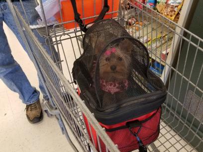 | yorshire terrier yorkie shopping shop cart carrier puppy dog tiny trick support service |