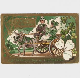 | donkey burro driving cart st st. pat's patrick's day card vintage old |