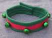 This collar has a nice jingle to it that will help find your dog in the dark and adds a festive atmosphere to your holiday parades and parties. This collar is held on by hook and loop so can be put on and taken off quickly but is not to be hooked to a leash. For dogs with a neck size of xx to xx inches (xx to xx centimeters).