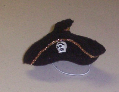 This DELUXE HAT is made in the trifold manner as my other PiRATe hats. This one has gold trim on the the brim with a cute little skull bead sewn on the front.