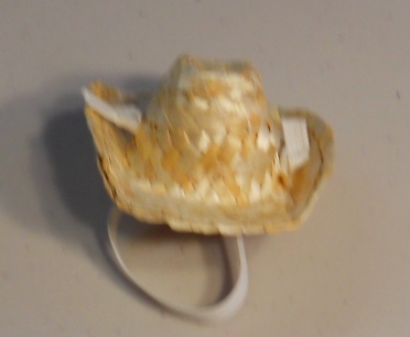 This is cute and even cuter with a Guinea Pig head under it. It is a Cavy sized cowboy hat. It stays on your pet's head with elastic. The elastic is left long when it arrives to you so that you can cut it or tuck it to fit your own Guinea Pig. If you have a dark colored Guinea Pig, use a permanent marker to color the elastic. Just let it dry well before putting the hat on your pet.