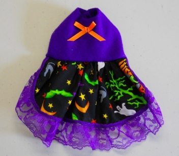 These little dresses are made in a variety of ways. This one is a Cute Halloween Print Dress with Purple Lace and a Orange White Bow! I wish the photos showed the outfits better then they do.