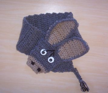 This is a neck warmer/scarf that I designed. Yep, I have one too!! It is approx. 35" x 3 1/2". It has a small button to secure it around your neck so that the wind does not blow it away. The eyes are double buttons..