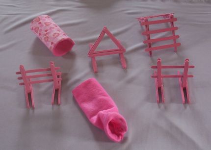 This is a fun item. It is a SEVEN piece, Painted BUBBLE GUM PINK, ready to go, Agility Set for Hamsters, Gerbils and or Mice/Mouse. You could also use this set for training young (small) rats/rat/ratties.