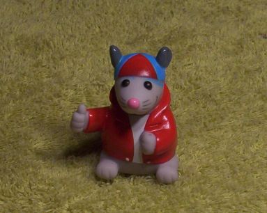 This little KOOOOL RAT in an open Red Shirt is really cute with his little beanie hat and giving the "thumbs up" sign with his little thumb!