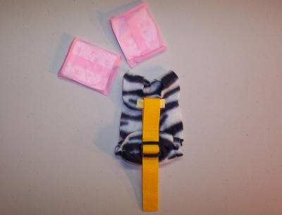 This one is for a Gosling Hatchling and will fit your gosling for a few weeks. It is Zebra Print and oh so cute. They grow so fasssssst! If it arrives and it would be a bit too big, wait a day or two (literally) and try it on your baby goose again. The Goose Diaper Holder comes to you with two Pantie Liners to get you started.