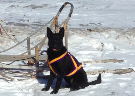 | black german shepherd dog sled harness harnessed |